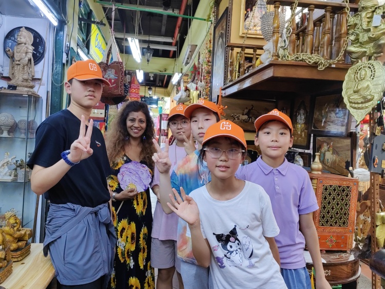 近日,来自杭州市福山外国语小学的师生在新加坡研学期间,展开了一场以“美”为媒的文化对话。孩子们手握亲手制作的漆扇——每一把都流淌着江南的细腻与东方美学的韵味,走进牛车水的百年骑楼、“小印度”的斑斓街巷,主动与当地居民交流互动。