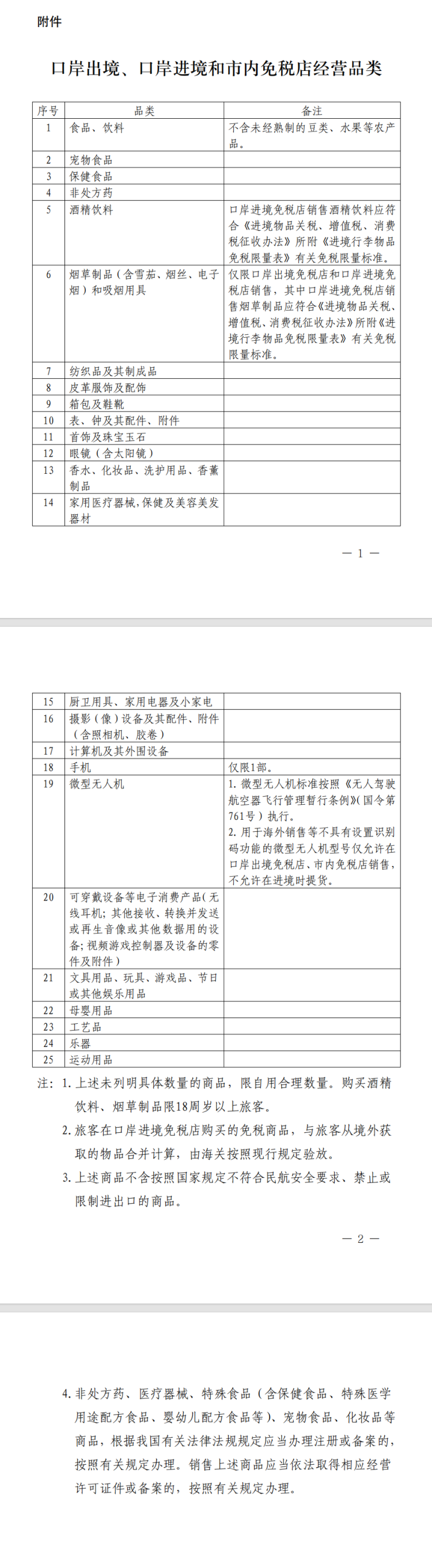 附件:口岸出境、口岸进境和市内免税店经营品类