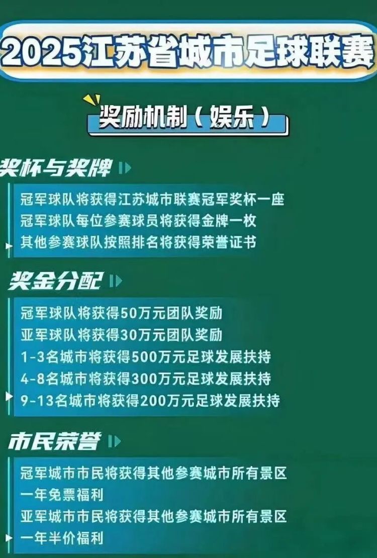 11月1日,2025年江苏省城市足球联赛总决赛在南京奥体中心体育场开赛,现场燃到爆!常规赛排名第六的泰州队,硬是靠点球大战4:3掀翻不败的南通队,拿下首届“苏超”冠军。现场6万+球迷见证奇迹,结果赛后一堆“神仙奖励”截图疯传。
