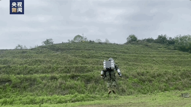 伴随着一阵轰鸣,一名男子背着一个“大包”,双臂张开,只见他用力一蹬,竟飞到了离地近两米的半空中,并稳稳悬停!