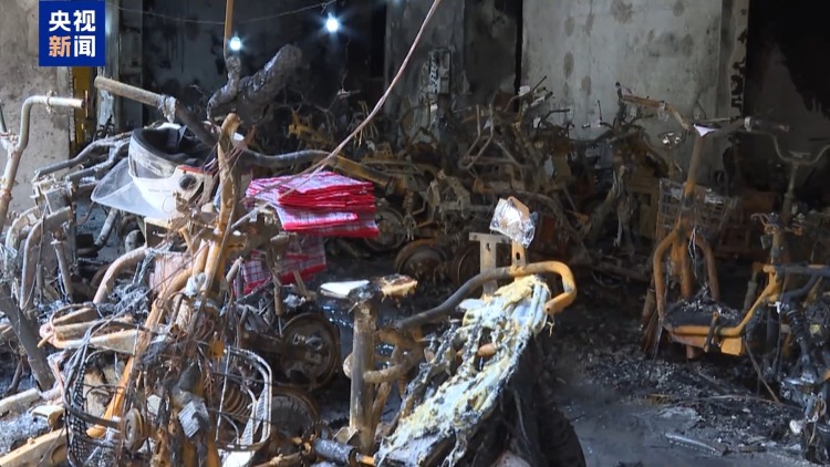 江苏省消防救援总队高级工程师崔蔚:当天晚上充电,但是事发的时候已经充满了,这个时候的电量,能量是最大的。凌晨四点发生火灾的时候,它的威力也是非常大的,锂电池燃烧的时候,释放电解液的可燃气体,是一个爆燃的现象,迅速使周围的电动车燃烧。