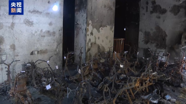 调查组在火灾现场调查了解到,事发当时,整个架空层共停放有120多辆电动自行车,记者在现场看到,这120多辆电动自行车全部参与了燃烧。
