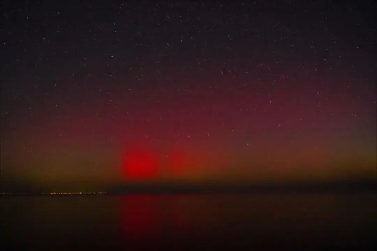 黑龙江哈尔滨出现的红色极光(来源:耕石)