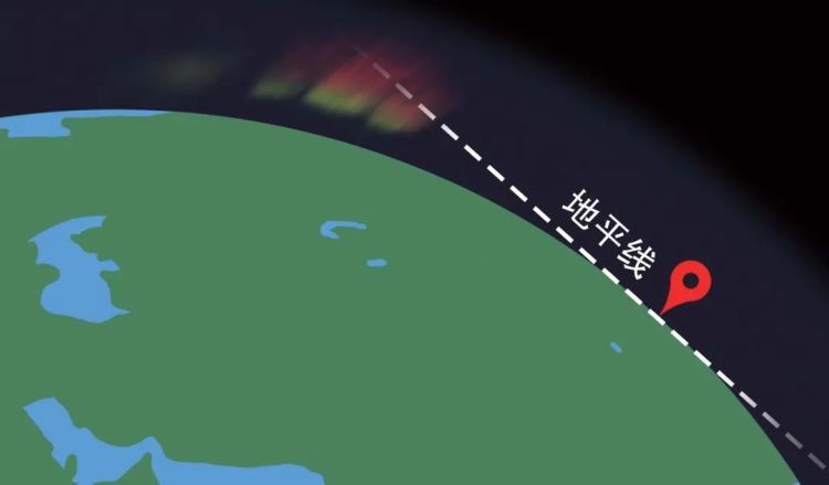 由于地球表面是个弧面,所以在纬度不够高的地区,只能看到极光在高空的红色部分,而绿色极光处于地平线以下,难以见到。