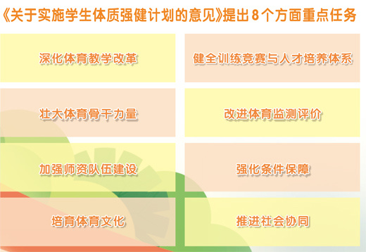 近日,教育部等5部门联合印发《关于实施学生体质强健计划的意见》,从深化体育教学改革、健全训练竞赛与人才培养体系、壮大体育骨干力量等8个方面提出20条举措,对深化学校体育综合改革进行系统部署,为教育强国、科技强国和人才强国建设提供坚实的人才支撑。近日,记者走进多地校园,看孩子们在阳光下茁壮成长,感受运动场上的活力瞬间,记录以体树人的生动实践。