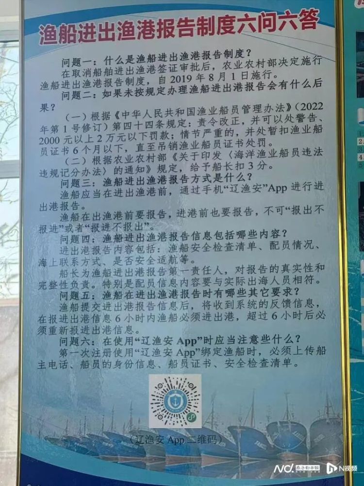 在辽宁营口市港口,有关渔船进出港报告制度的宣介版
