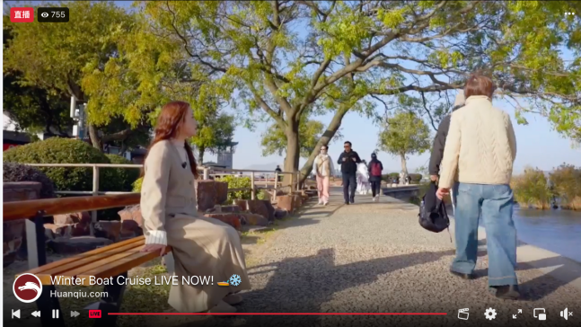 冬至将近的太湖呈现出“一年中最静、最清、最柔”的状态。直播通过高清实景捕捉湖面、光线、山影、薄雾的层次变化,生动呈现冬季太湖低饱和度的水墨质感。“水面更静、色彩更柔、山线更清晰”的冬日美学,被系统化拆解与解读,彰显太湖冬季独有的高级审美。互动方面,创新设置“点景挑战”,由观众实时“点单”候鸟、仙岛、湖心景致,主持人即时寻找并讲解,以用户驱动的镜头调度形式增强参与感,使直播真正成为“双向互动的实时云游”,提升观看体验的主动性。