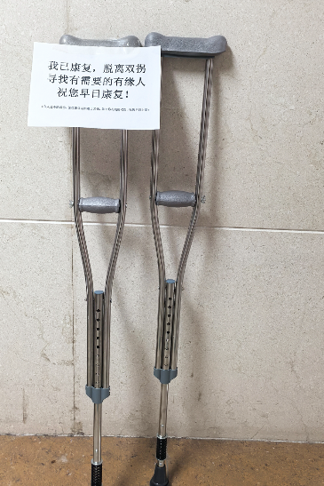 原来是有康复者把用过的拐杖留在了医院,想把拐杖送给需要的人。这副拐杖的出现,像是一份“善意漂流瓶”,瞬间就感动了迟医生。