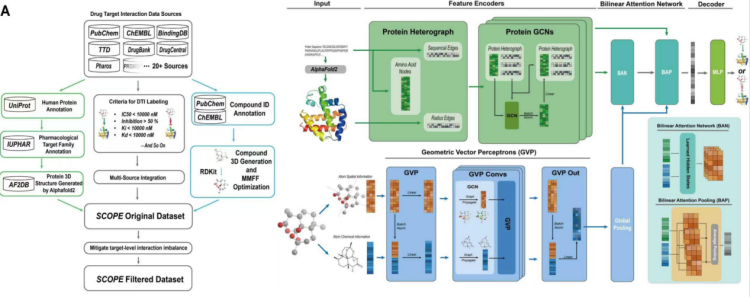 Scope DTI-AI人工智能靶点筛选模型基于13个国际权威数据库构建,通过蛋白及小分子三维结构模拟,结合双线性注意力网络(BAN),实现对成分——靶点相互作用的高精度预测。该模型以超百倍于传统方法的数据规模,突破“试错式研发”局限,将抗光损、敏感肌修护等功效验证推向分子机制层面。