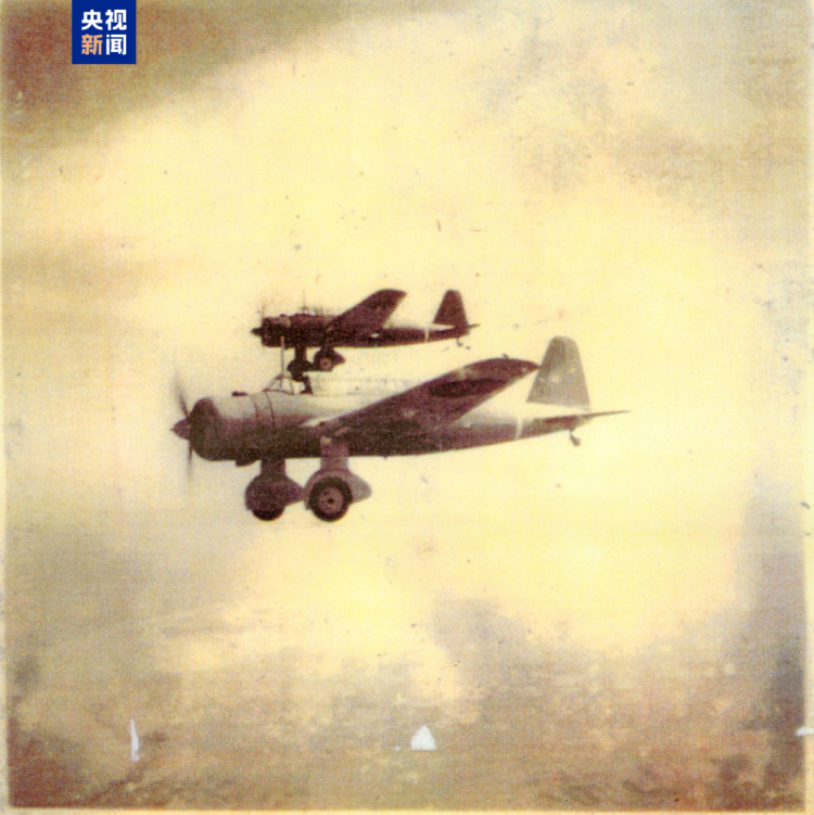 ▲七三一部队成员樱永孝雄驾驶97式轻轰炸机在南京上空飞行