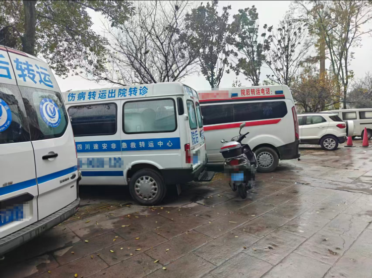 在位于南充的川北医学院附属医院茂源南路综合院区,医院附近就有一家名为“康佑转运”的公司,停放有类似救护车的车辆。一名司机告诉记者,他们主要承运急需转院的病情比较紧急的病人,比如前往成都、重庆等大城市治疗。