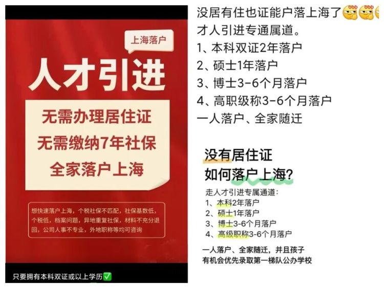 2025年12月1日起,上海落户政策迎来新一轮调整,“居转户”、引进人才和留学落户三大类方式均有更新。政策变化发布后,各类社交媒体、短视频平台和网络论坛上迅速涌现大量关于“落户上海门槛骤降”“无需学历也能快速落户”的宣传。围绕上海落户新政的讨论中,落户中介机构的夸张营销尤为亮眼,他们普遍宣称,只要缴纳一定费用,配合完成相应的社保操作,无论个人条件如何,都能顺利落户上海。
