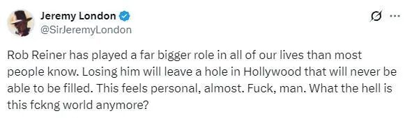 美国演员工会主席也发表声明称:“罗伯·莱纳是电影和电视史上最重要的人物之一。他对美国文化的影响怎么强调都不为过。”