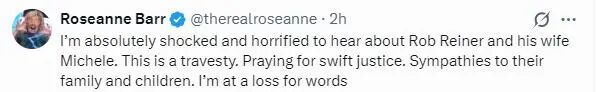 罗伯的家人发声明证实了这个消息:“我们怀着无比沉痛的心情宣布米歇尔和罗伯·莱纳不幸离世。我们对这一突如其来的噩耗感到心碎,恳请大家在这段无比艰难的时期尊重我们的隐私。”