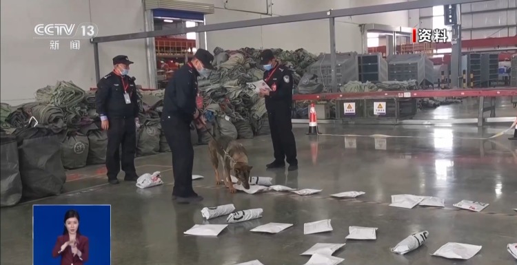 总台央视记者 陈昱:这里模拟了机场的行李传送带,我们现在看到传送带上已经放置了11个箱子,现在我将我手里的这个“毒品”随机放在我身边的其中一个箱子里,拉上。我们来看一看昆明犬能不能在这11个箱子当中成功找到存放“毒品”的箱子。