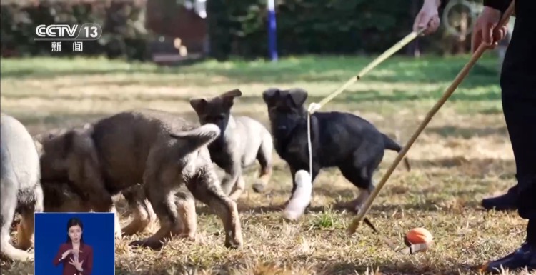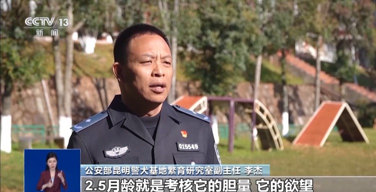 公安部昆明警犬基地繁育研究室副主任 李杰:从出生就要做一些声响锻炼,给它见一些事,听一些响声,刺激它的听觉、嗅觉,到断奶45天左右,就会要它跟主人进行互动。