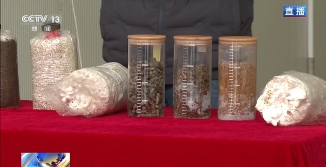 黑土地能长出好粮食,食用菌也是这个道理。一包菌棒约2000克,里面填充了特殊的“基料”,成分有配比的玉米芯屑、木屑等,其中会添加250克的豆粕、甜菜粕等成分,其实都是农业的副产品,但也能成为菌菇生长的好养料。