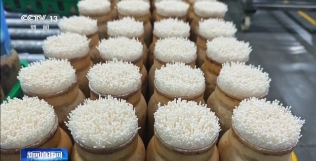总台记者毛俊介绍,在江苏连云港灌南县的现代化菌菇生产基地,每间菇房长10米、宽8米、高4米,内部摆放着20多排共计约12000个长满杏鲍菇的菌棒。杏鲍菇长到15厘米至18厘米即为成熟,每个菌棒可产鲜菇800克左右,相比传统种植方式增产30%,算下来单间菇房一轮就能产出19000多斤杏鲍菇。