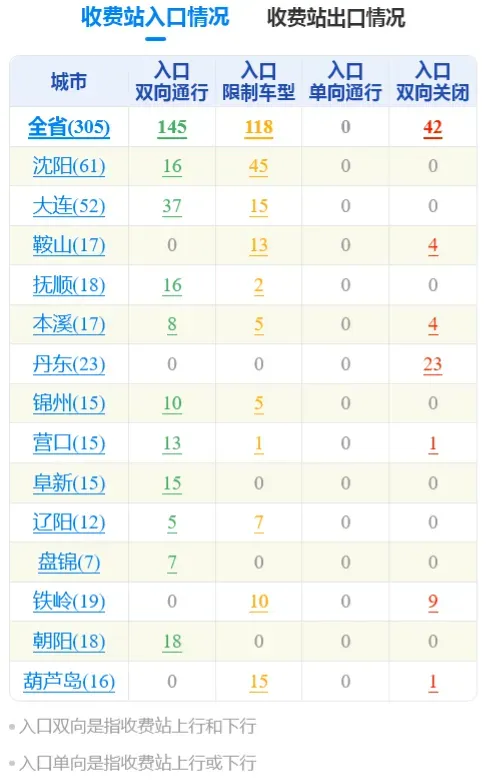 截至12月23日08时36分,辽宁交投管辖路网内受特殊天气影响,除鞍山、本溪、丹东、锦州、营口地区部分收费站关闭外,沈阳、大连、鞍山、锦州、辽阳、铁岭、葫芦岛地区部分收费站均限制车辆通行。