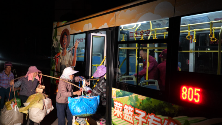 更具烟火气的民生图景,在城乡间铺陈开来。805路和809路“菜篮子专线”将车站开到村口,发车时间也卡准了菜农进城的早高峰,彻底帮他们卸下了“赶路的重担”。“以前我们挑着几十斤菜,大清早还得走一公里才能到客运站,很累还容易赶不上早市的好行情,现在就方便多了,收入也多了不少。”忠良村村民丁先生说。