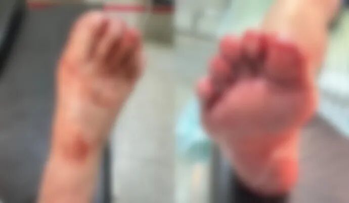 接诊的急诊科医生章佳晨立即对多多进行检查,发现她的脚部、腿部有多处不规则裂伤,最深的伤口达到1厘米,还伴有玻璃碎屑残留。之后,医护人员迅速为她清理伤口、取出碎屑、消毒缝合。