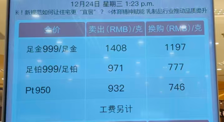 最近的黄金价格不断刷新历史最高。12月24日,现货黄金首次突破每盎司4500美元关口,但比起国际金属市场不断狂飙的价格,老百姓更容易看懂的是:周大福、周生生等金店一夜之间上调金饰价格35-36元/克,品牌克价集体突破1400元大关,而且还在继续上涨中。