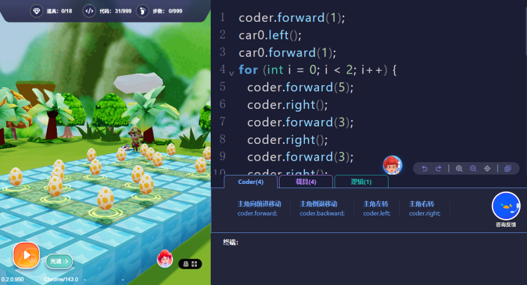 在帮助学生启蒙的同时,如何为已经进入学习轨道的学生提供更具挑战性的进阶教育,同样是AI教育发展过程中必须面对的课题。此次在“快叮岛”中增设“C++关卡”,正是在现有学习框架之上的一次纵深探索。借助技术与设计的双重赋能,该教学内容将复杂的编程概念转化为可互动、可沉浸的学习体验,原本艰深的C++知识得以在趣味挑战中被逐步掌握,既持续激发学生的探索动力,也以闯关式学习化解传统模式中的枯燥与高门槛困境。