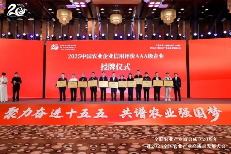 引领行业高质量发展。商会建立了全国首个农业企业信用评价平台,2024年首批授予广东恒兴集团、新疆天农农机、龙王致新等10家AAA级信用企业。2025年授予大北农集团、大禹节水集团、黑龙江和粮农业、千味央厨等12家AAA级信用企业。