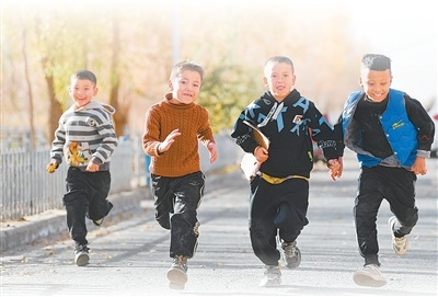 小朋友奔跑在达里雅布依新村。新华社记者胡虎虎摄