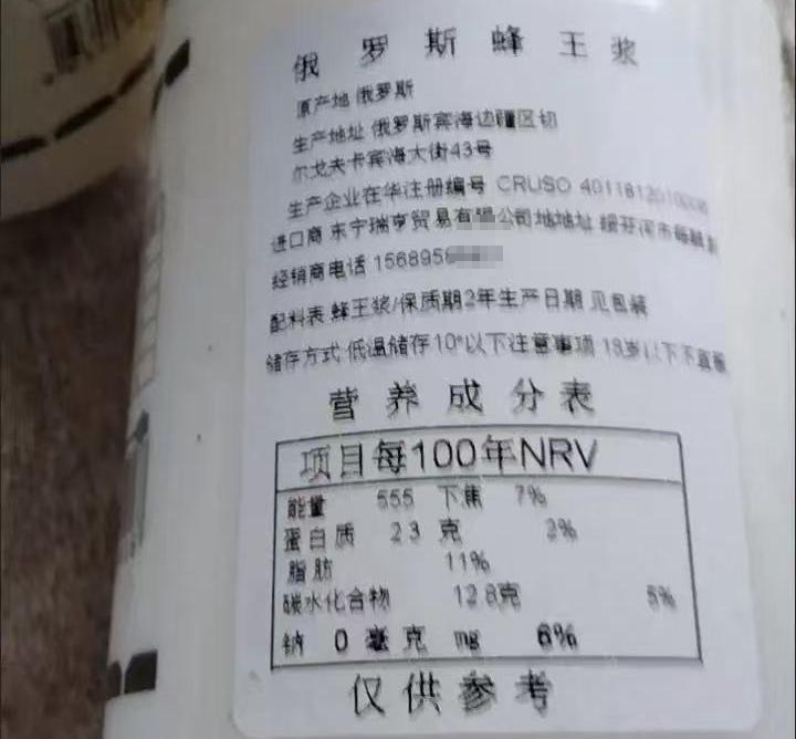 一款网购平台在售“俄罗斯蜂王浆”展示的产品信息。网络截图