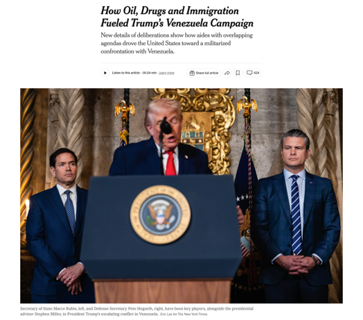 首先是国内政治窗口。特朗普重返白宫后,移民、治安与边境问题始终是其最核心的动员议题,当下压力更是有增无减。把马杜罗定义为威胁,能把多个焦虑捆成同一条因果链:毒品与暴力“从南方来”,因此白宫“必须动手”。