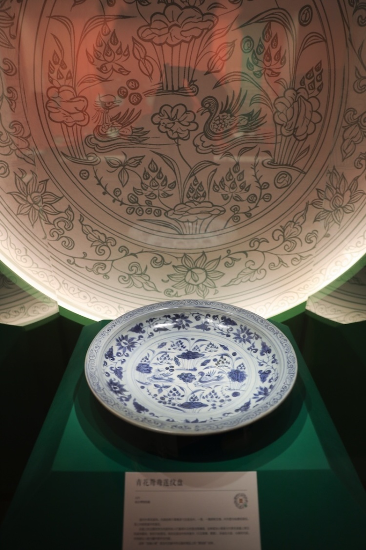青花鸳鸯莲纹盘,元代,南京博物院藏