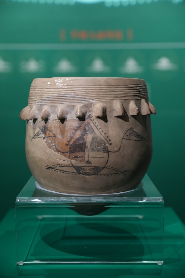 人面鱼纹尖底器,新石器时代仰韶文化半坡类型,陕西临潼姜寨遗址出土,西安半坡博物馆藏