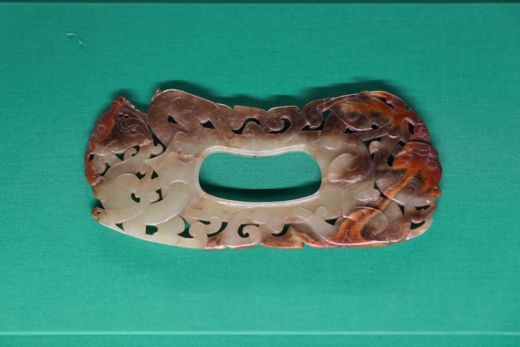 透雕蟠螭纹韘形玉佩,东汉,河北中山穆王刘畅墓出土,定州市博物馆藏