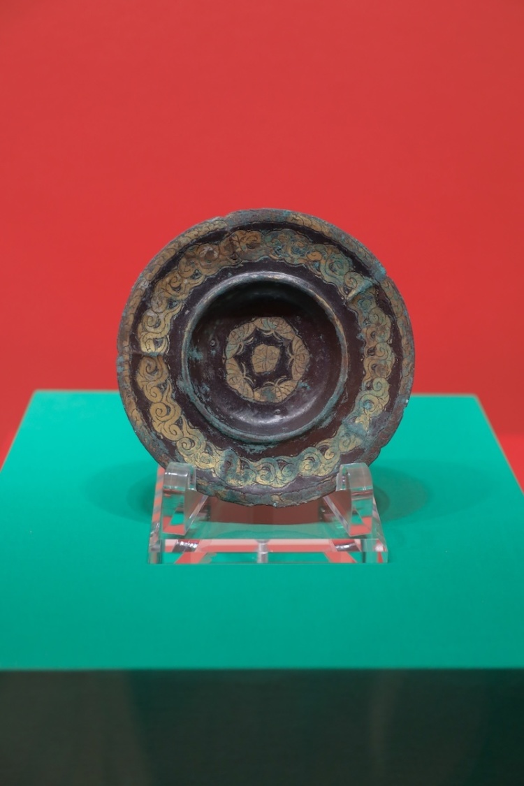 平脱花蝶如意纹铜盏托,唐代,定州静志寺塔基地宫出,定州博物馆藏