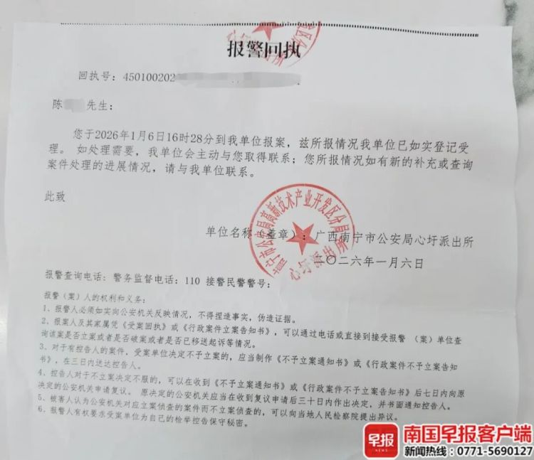 对于涉赌App一事,陈先生坚决撇清关系:“我们根本不知道这款软件的存在,诱导下载完全是信息发布者的个人行为。”他透露,现场有人提供了信息发布者的手机号,楼盘方拨打后发现对方已关机。目前,楼盘方已向心圩派出所报案,警方已受理并出具报警回执。“我们也是受害者,平白被卷入纠纷,还影响了楼盘正常销售,后续一定会追究相关人员的法律责任。”