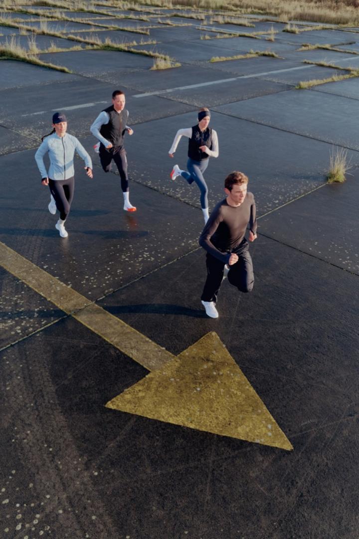 FALCON FLY设计灵感源自品牌双板竞速滑雪鞋的结构语言——锐利、流畅、去冗余,以干净利落的廓形勾勒出破风前行的运动姿态。此外,该系列打破常规冬季跑服单一使用场景局限,搭载「热力分区系统」,针对奔跑状态下人体不同区域的不同温度对跑服重新进行分区梳理,通过功能性面料和保暖材质的精准配置,构建覆盖跑前、跑中与跑后的系统化跑步组合,让冬季跑步成为一种自如流畅的的连续体验。
