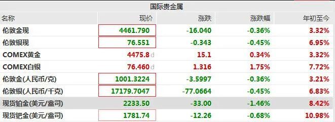 受贵金属价格集体上涨影响,A股、港股相关个股亦有明显涨幅。