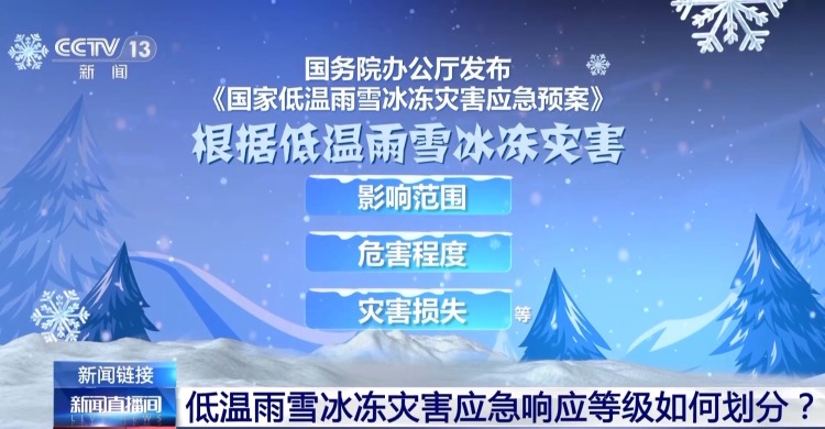 1月份自然灾害中重点提到了雨雪冰冻灾害方面。那么,今年我国低温雨雪冰冻灾害的形势如何?这一灾害的主要成因是什么?《国家低温雨雪冰冻灾害应急预案》近日发布,国家层面的应急响应级别又是如何划分的?