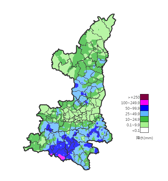 7月25-26日陕北出现强降水,榆林和延安北部共13站累计雨量超过200毫米。此次降水极端性强、降水时段集中,9个区域站日降水量突破建站以来极值。25日为降水最强时段,定边新安边日降水量达264.5毫米,吴起铁边城达230.9毫米,日雨量接近或超年平均降水量的一半。降水造成吴起县部分街道被淹、商铺房屋进水,主城区、铁边城镇、吴仓堡镇等地区部分电力设施受损。降雨还导致北洛河流域接连拉响警报,干支流出现超警戒洪峰流量。