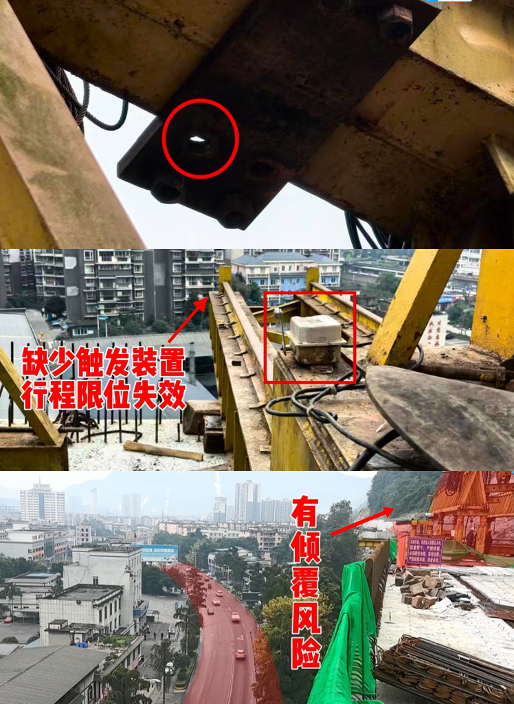 在乐山市S430沙湾区过境段改建工程现场,一台最大起重量120吨的老旧架桥机引起考核巡查组注意:结构件连接螺栓缺失、行程限位失效,下方紧邻繁忙公路,一旦倾覆极易造成群死群伤。