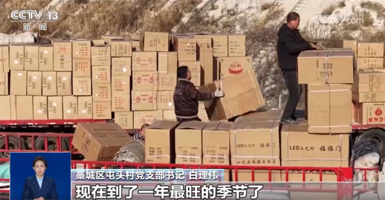 在河北石家庄藁城区屯头村,大大小小的宫灯厂一家挨着一家,前来进货的汽车进进出出,一片热闹繁忙。