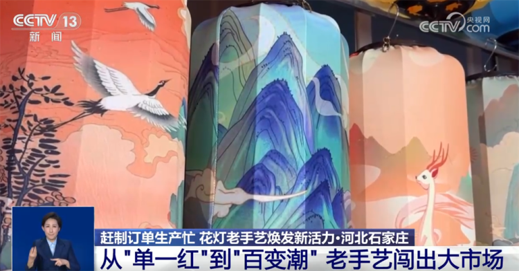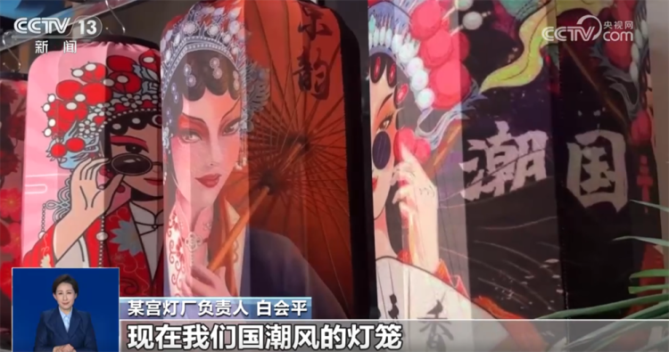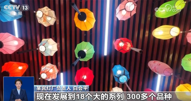 某宫灯厂负责人 白会平: 通过跟大专院校合作,研发新的产品,每年都得有一个新的突破。现在我们国潮风的灯笼特别受年轻消费群体的喜欢。原来我们是单一的几个品种,现在发展到18个大的系列、300多个品种,而且根据客户的要求还可以量身定做。