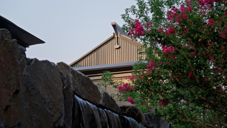 在宏大的营城骨架之下,中建智地将盛唐文化注入国贤府的每一处肌理:从取样大明宫丹凤门的高规格府门,到复刻“一池三山”的唐风园林;从彰显等级的庑殿顶建筑,到脚下寓意吉祥的“步步生花”地刻、随处可见的宝相花纹与宫灯……千余年前的盛世辉煌,此刻正照进当代人居。