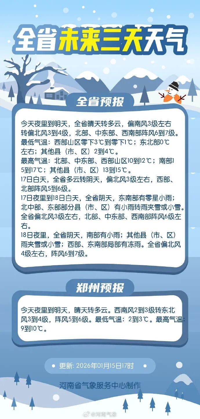17日夜里到18日白天,全省阴天,北部、中东部部分县(市、区)有小雨转雨夹雪或小雪。全省偏北风3级左右,北部、中东部、西南部阵风6级左右。