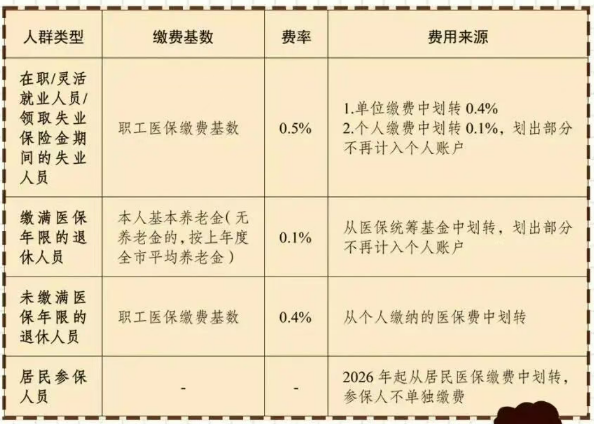 享受医保退休待遇但不享受职工养老退休待遇的人员,缴费基数按统筹区上上年度全口径城镇单位就业人员月均工资的60%确定。
