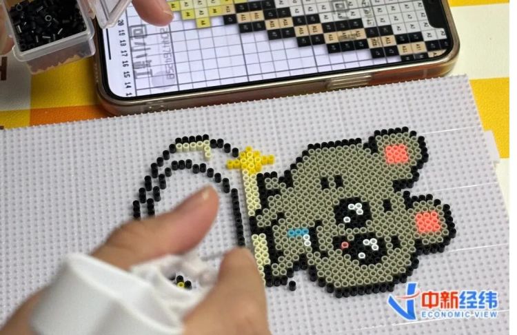 一种名为“拼豆”的手工像素画在社交平台上持续火热。