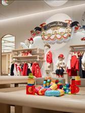 空间灵感取自唐朝的骆驼商队与满载奇珍的西域宝箱,利用可玩、可画、可探险的互动设计,打造出一个激发想象力、促进亲子互动的趣味式“探险乐园”。通过进一步划分出的大童区、小童区及鞋履区,令不同年龄段的孩子都能在这里针对性地挑选到符合需求的高品质鞋服。