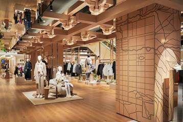 以文化叙事为脉络,FILA TOPIA构建了以“意动永恒”、“海丝逐浪”、“未来唐韵”和“丝路奇境”为主题的四大场景动线,并依次对应了专业运动、鞋履、都市生活与潮流时尚、儿童四大产品区域。FILA首次将旗下全矩阵产品以空间场景化的布局集中于同一门店,让不同年龄段、不同穿着场景需求的顾客均能在此选购所需,兑现从满足“一个人”的个性化需求,到服务“一家人”的家庭消费,并最终拓展至“一群人”的社群化场景的品牌承诺。