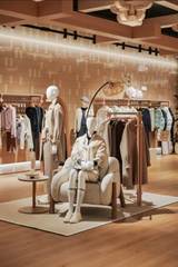 与设计语言相呼应,左侧生活区将FILA生活系列服装与精致的家居氛围摆件进行情境化搭配,让消费者能够在“生活客厅”场景中,从容选购日常生活与社交通勤所需。右侧潮流区则通过一系列模特矩阵,为追逐先锋趋势的年轻人带来引领潮流、彰显鲜明文化态度的穿搭组合。